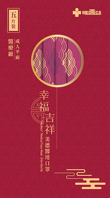 這也是美德醫療首次推出台灣新年限定款口罩,設計靈感來自於古時寓意吉祥的祥雲紋,過去人們認為若天邊有祥雲出現,意指將有好事發生,設計團隊便特別把扇形祥雲紋融入設計中。