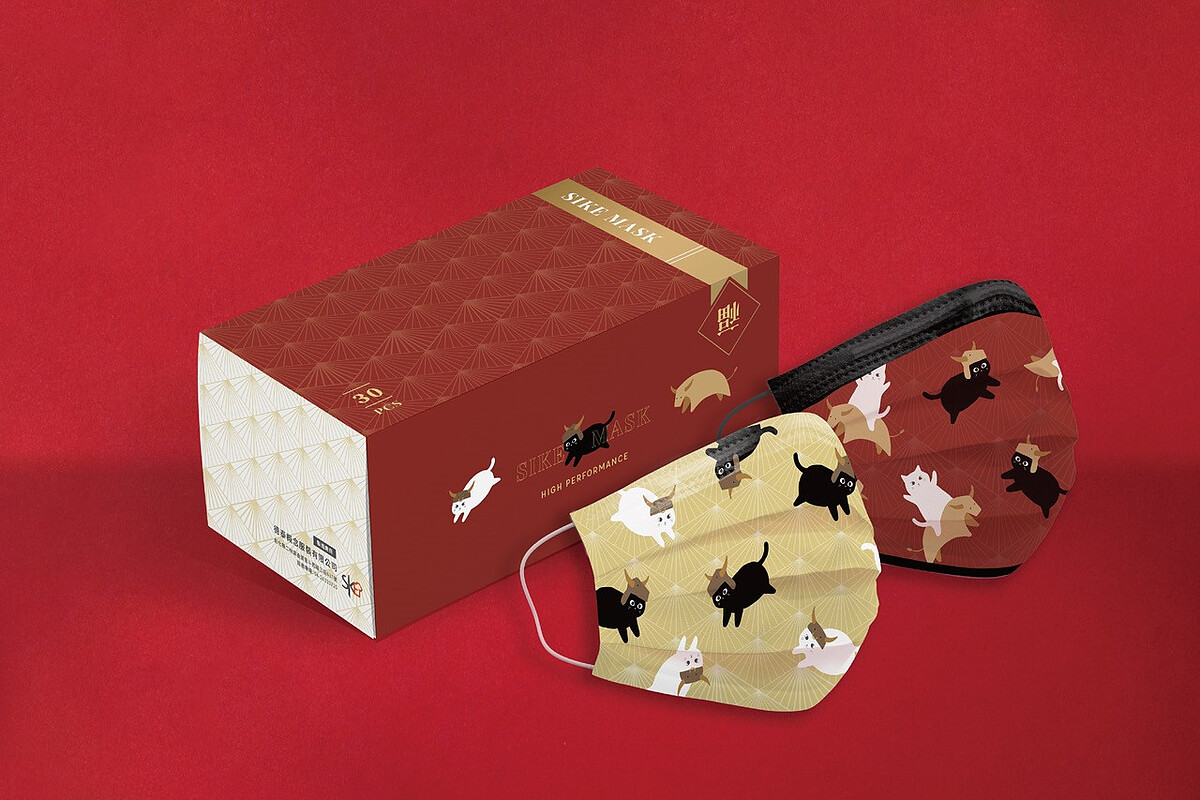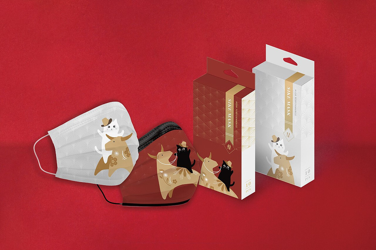 德泰舒康這次的「農曆新年限定口罩」特別打造「野牛騎士系列」,將品牌吉祥物黑白貓咪圖騰為設計主視覺,結合可愛野牛騎士元素,設計出兩種色系的「亂數款」與「定位款」風格。