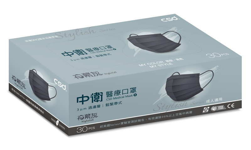 CSD中衛口罩「夜幕灰」五片入袋裝69元,30片盒裝260元,詳細販售通路將統一於中衛粉絲專頁公布。
