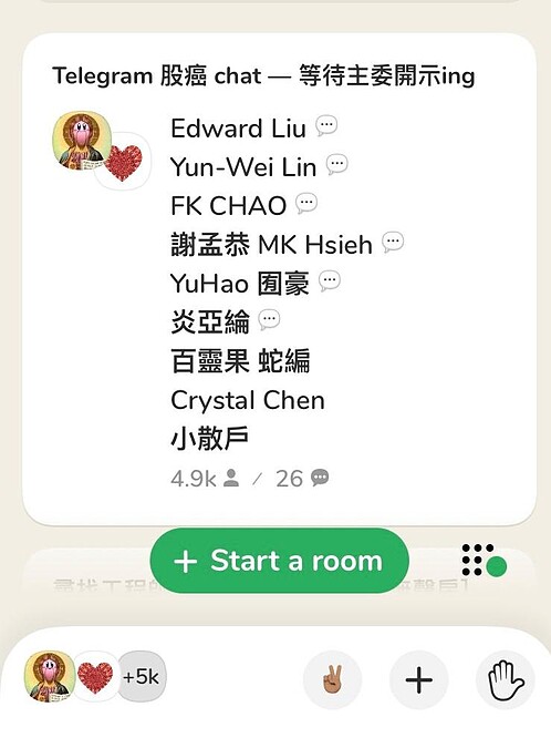 進到這種房間不會有人開麥出聲,只是單純互相看彼此的簡介是否要追蹤,通常會有限定類型,比如說youtuber、行銷人、北美華人等等。但是官方也有說明不鼓勵這樣類型的房間,官方希望這個App是透過聲音彼此交流,日後也會針對此類房間封鎖,甚至有封鎖帳號的可能