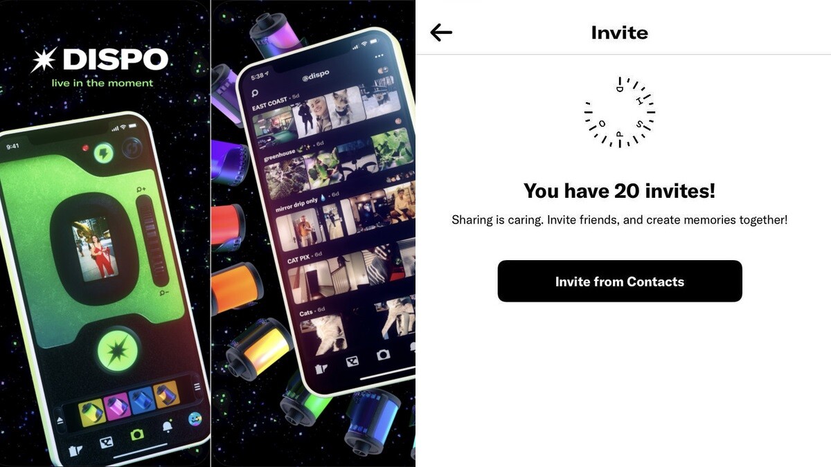 如同Clubhouse的邀請制,Dispo也不是你想用就能用,下載之後必須擁有邀請碼才能開始玩,一個新用戶通常會有20個邀請碼,你們也需要有對方電話才能發送邀請,此外,Dispo目前僅限iOS用戶。