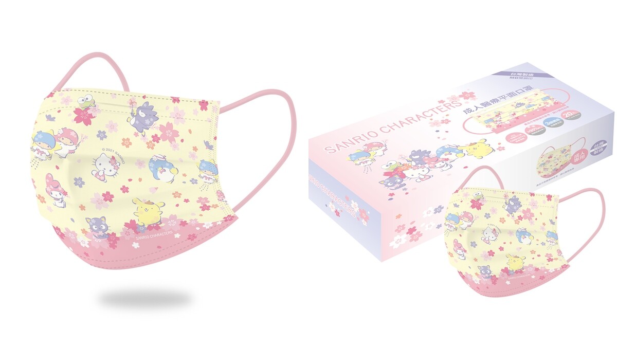 沒賞到櫻花的人,也能感受這春天獨有的浪漫氣氛!由台歐企業委託摩戴舒製作的「三麗鷗系列-櫻花成人醫療口罩」,佈滿多位三麗鷗明星,並用上黃粉兩色及櫻花花瓣點綴設計,呈現出「櫻吹雪」風景,讓你一整天都有好心情。
