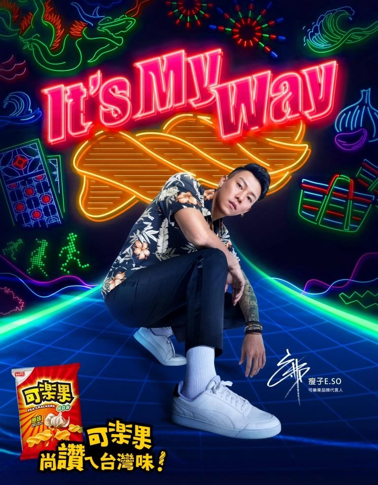 配合「可樂果50週年:It’s My Way」,可樂果特別邀請饒舌歌手瘦子E.SO擔任年度代言人,可樂果表示,瘦子E.SO具有獨特的爽朗性格,而他忠於自己的態度,與可樂果想要傳達的理念不謀而合!此次代言也是瘦子E.SO首次為零食品牌發聲,超有態度的他更以可樂果全新品牌主張為創作靈感,一手包辦詞曲打造出全新的可樂果專屬主題歌「It’s My Way」,透過饒舌傳遞可樂果支持年輕人勇敢做自己的生活態度。
