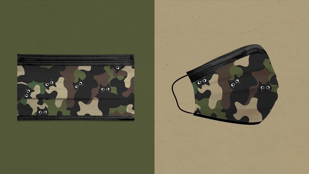 而「個性迷彩」亂數款則採用滿版黑萌貓咪,結合時髦個性的大地色迷彩圖騰,帶有保護色的黑萌喵喵身影隱身其中,輪廓邊條也採用同色系黑色視覺。