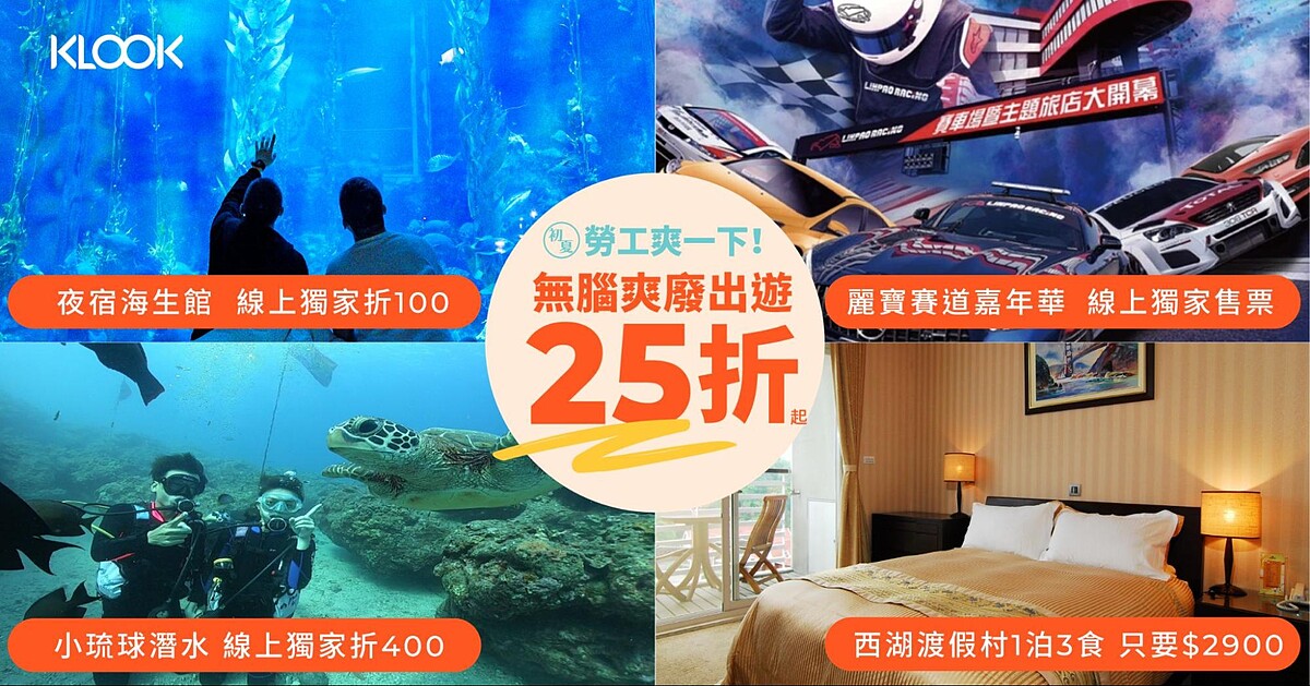 從現在起到5月2日,人氣旅行預訂網站KLOOK近期就貼心的推出「連假無腦耍廢出遊」優惠活動,不僅整理出適合連假出遊的行程,還有低至25折的好康優惠,簡直讓人無法抵抗!!連M編都忍不住逛起來,畢竟現在預定,遇到連假就可以隨時啟動說走就走的小旅行啦!立馬手刀預定