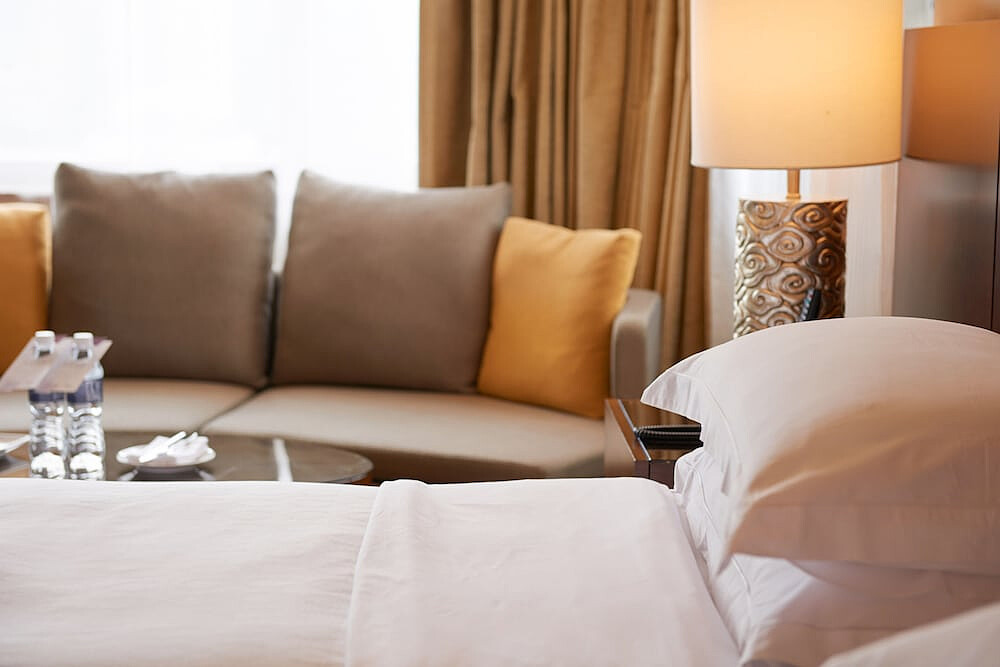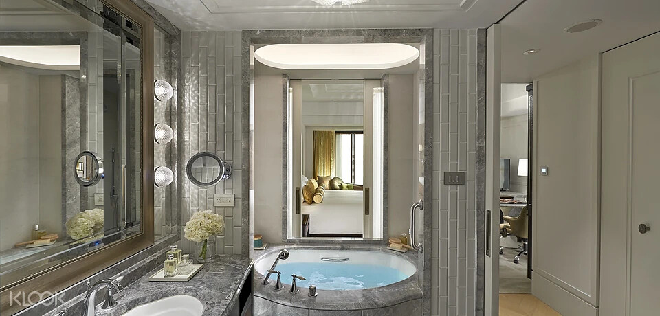 - 17坪大的豪華客房配有豪華浴室、法國頂級香氛品牌Diptyque沐浴備品、寬敞可容賓客進出的衣帽化妝間、480 針美國頂級Quivera棉質床單與鵝毛羽絨寢具 、高達六種不同的枕頭選單,讓入住的每位賓客都賓至如歸。