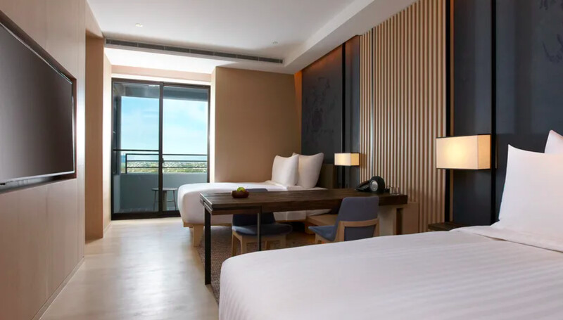 - 12坪禪意雙床房、席夢思床具組、Forte 沐浴用品,每房提供迎賓小點、礦泉水、單次冰箱飲品、膠囊咖啡機,享免費Wifi、國際與國內電視頻道及隨選電影。