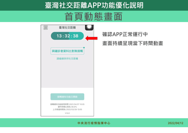 為方便民眾確認APP是否正常運作,畫面會持續呈現出當下的時間動畫。