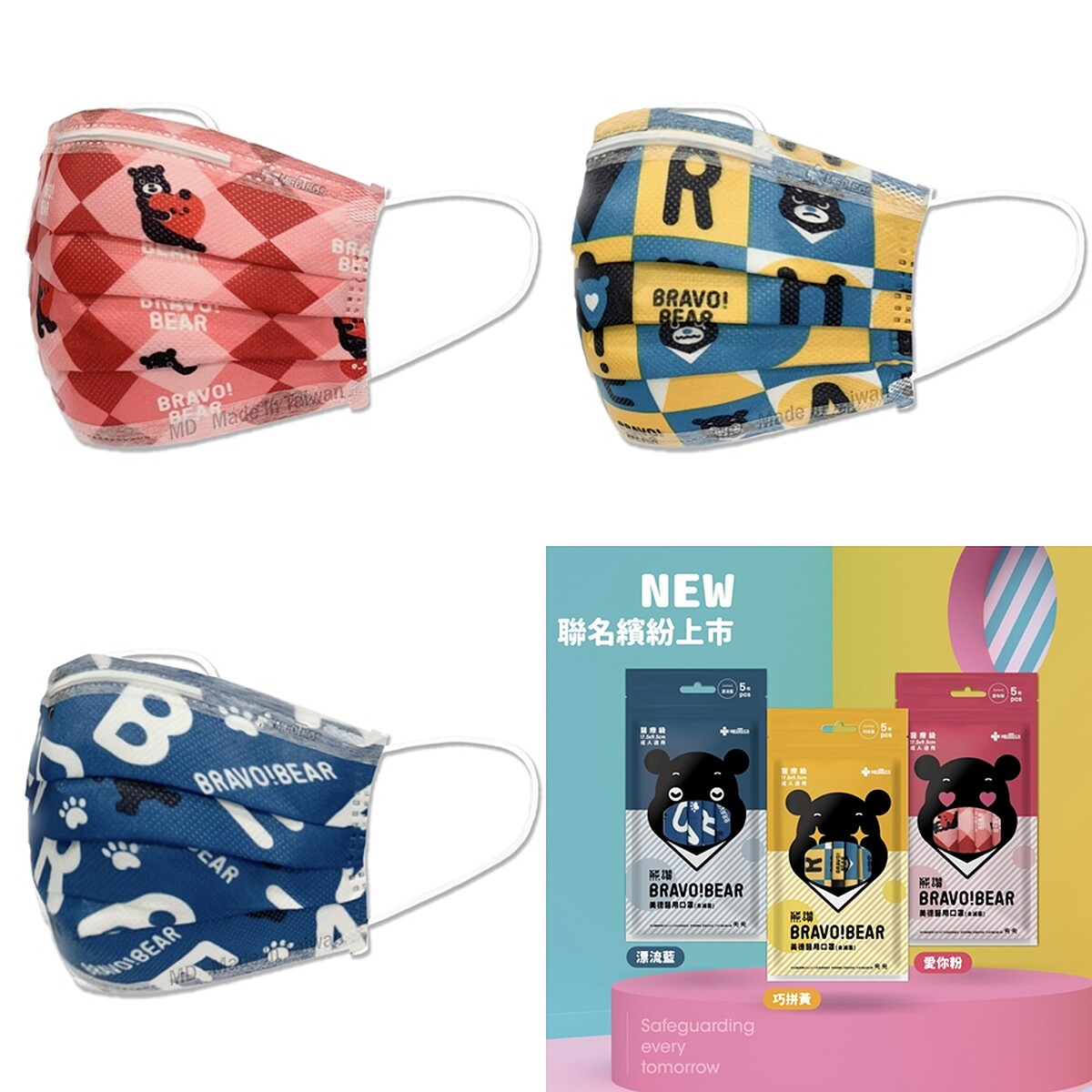 全新開賣的是美德醫用口罩與「熊讚」聯名推出的醫療口罩,加入繽紛、色塊拼接設計元素展現活力,共有漂流藍、愛你粉、巧拼黃三款。官網上還能找到「霹靂防疫包」、涔宇醫療口罩多款選擇,即便身處防疫期間,仍然能顧及整體穿搭。