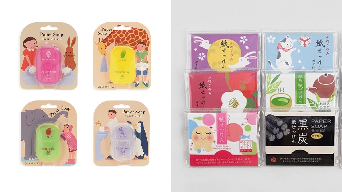 在這防疫關鍵時期,勤洗手也是不可少的動作,誠品線上可買到日本品牌CHARLEY迷你紙香皂,隨手一抽出紙肥皂、加水輕輕搓揉便能產生出細緻泡沫。另有京都胡風文具「表現社」推出的多款紙肥皂、乾洗手能選購,助你隨時維持乾淨的雙手。