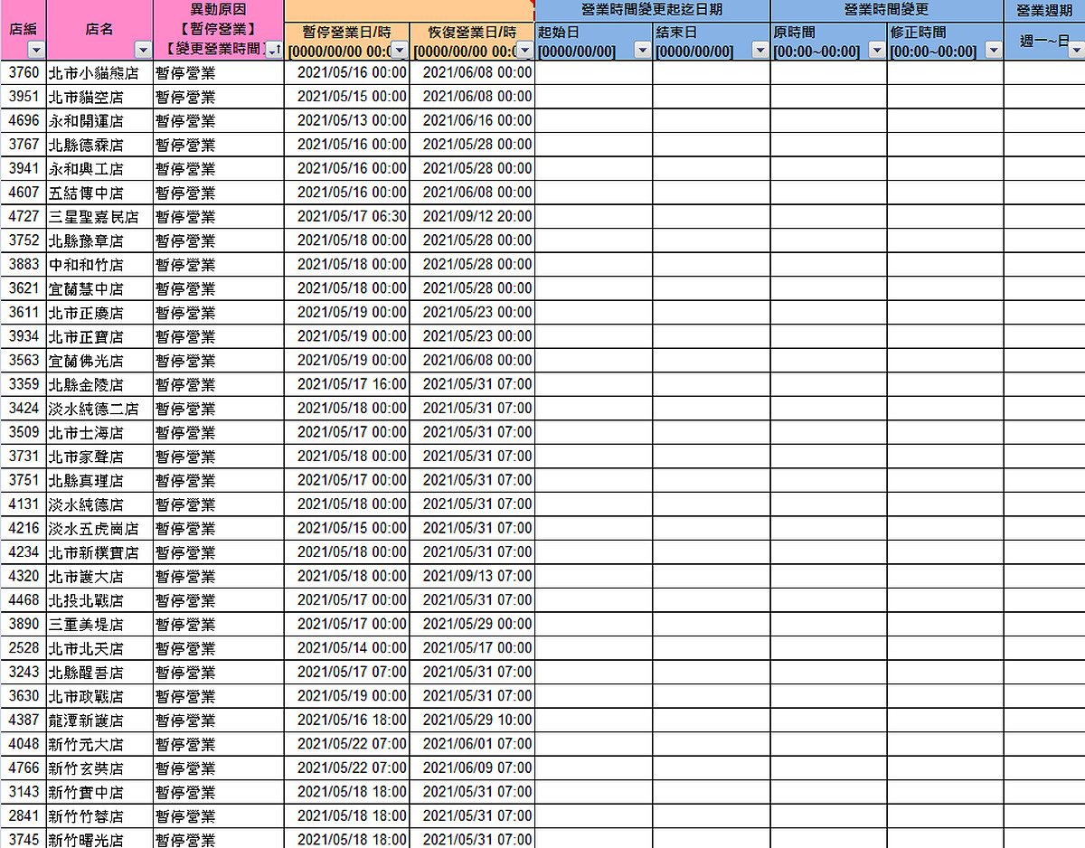 【萊爾富】異動營業時間門市一覽(可點連結看官網資訊)