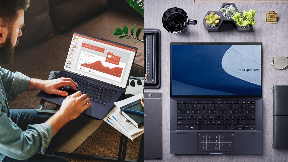 深受商務人士青睞的ASUS ExpertBook B9,除了有「星夜黑」低調質感外型,重量僅880克起,成為「世界最輕」14吋商用筆記型電腦,更符合軍規等級測試,具備耐久穩固,防摔、防潑水特性。而全新的AI音訊降噪技術則能滿足需要常常進行遠距會議的人,還可以用臉部進行登入、續航力最高達24小時,給你全天候滿滿電力!