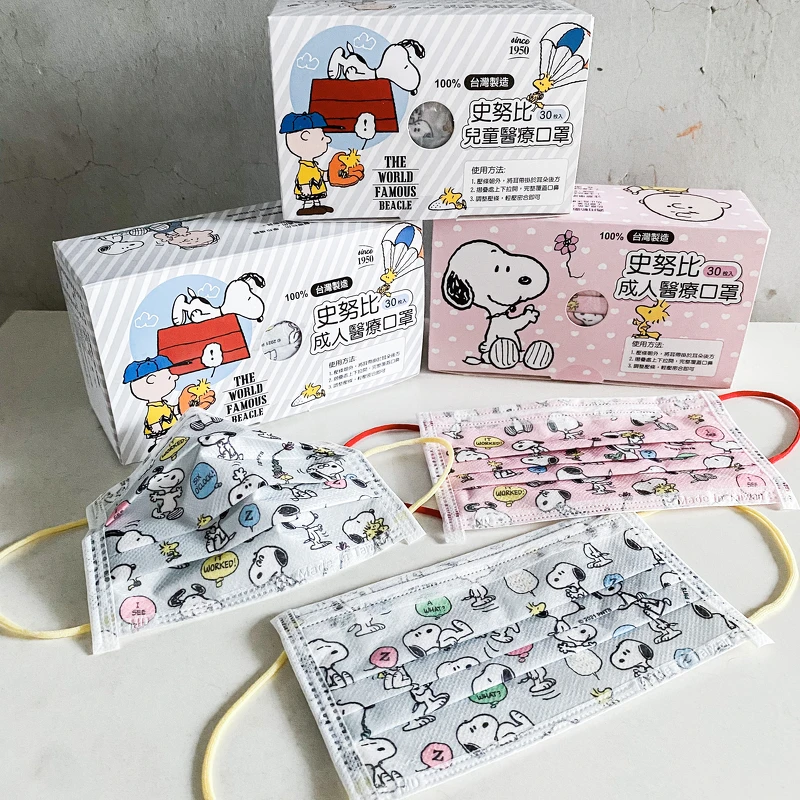 口罩新選擇再加一!讓大家在防疫之餘也能被療癒,這次推出2款顏色的Snoopy醫療口罩,共有灰、粉2種顏色。