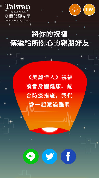 這項簡單卻蘊含深厚情誼的「線上天燈祈福活動」,更可以讓國外的朋友一起參與!可以切換成日語及英文模式,不讓距離讓彼此感情生疏,繼續為疫情努力加油,期待能再次重聚的那天到來!