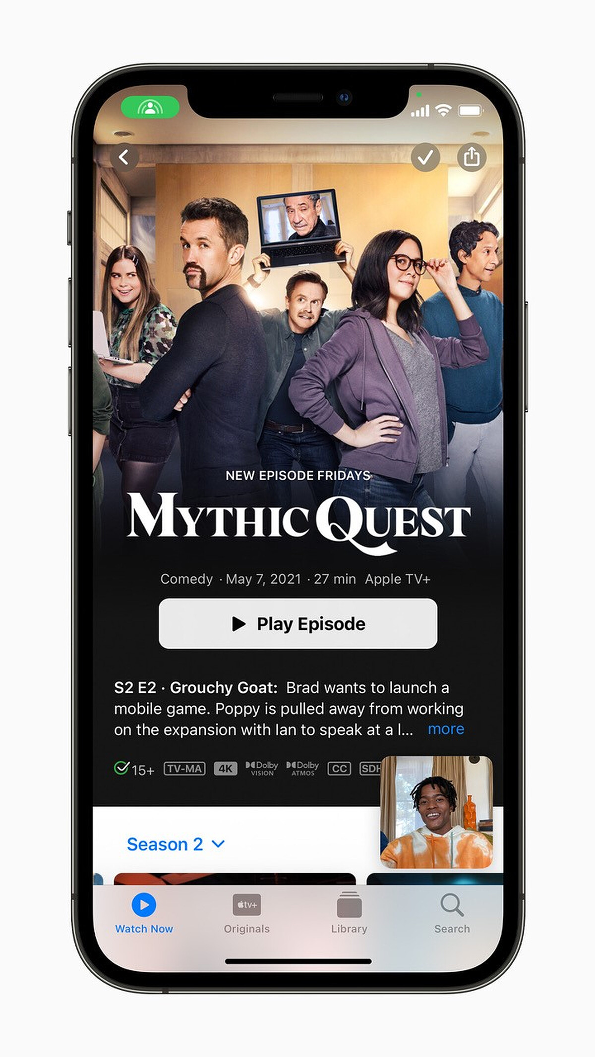 在與朋友進行 FaceTime 通話時,可以用 SharePlay 分享體驗,包括在 Apple Music 上一起聽音樂、同時觀賞電視節目或電影、或分享螢幕一起查看 app。SharePlay 在 iPhone、iPad、Mac 都可使用,而且透過共享播放控制功能,參與 SharePlay 的每個人都可以播放、暫停、快轉。SharePlay 還可以延伸到 Apple TV,使用者可以在進行 FaceTime 通話的同時,在大螢幕上觀賞節目或電影。