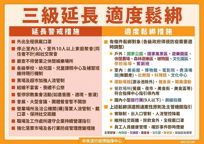 國內疫情逐漸趨緩,不過三級警戒預計延長到7/26,而微解封的適度鬆綁措施也公開。