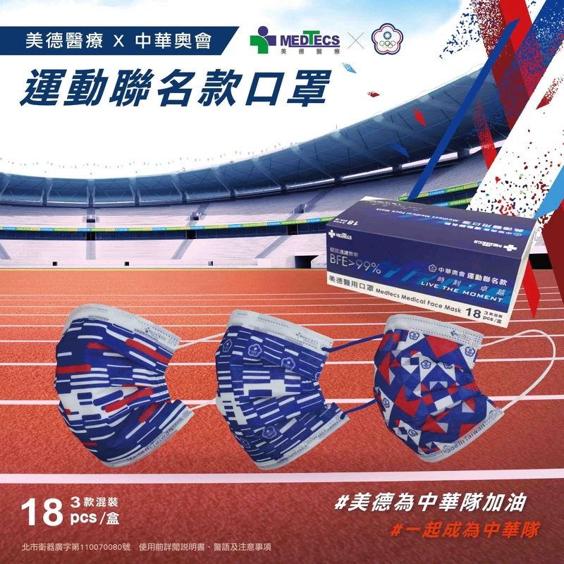東京奧運將在7月23日登場,美德醫療這回攜手中華奧會推出三款獨家限定版「中華奧會運動聯名款」醫用口罩,一起為中華隊加油!
