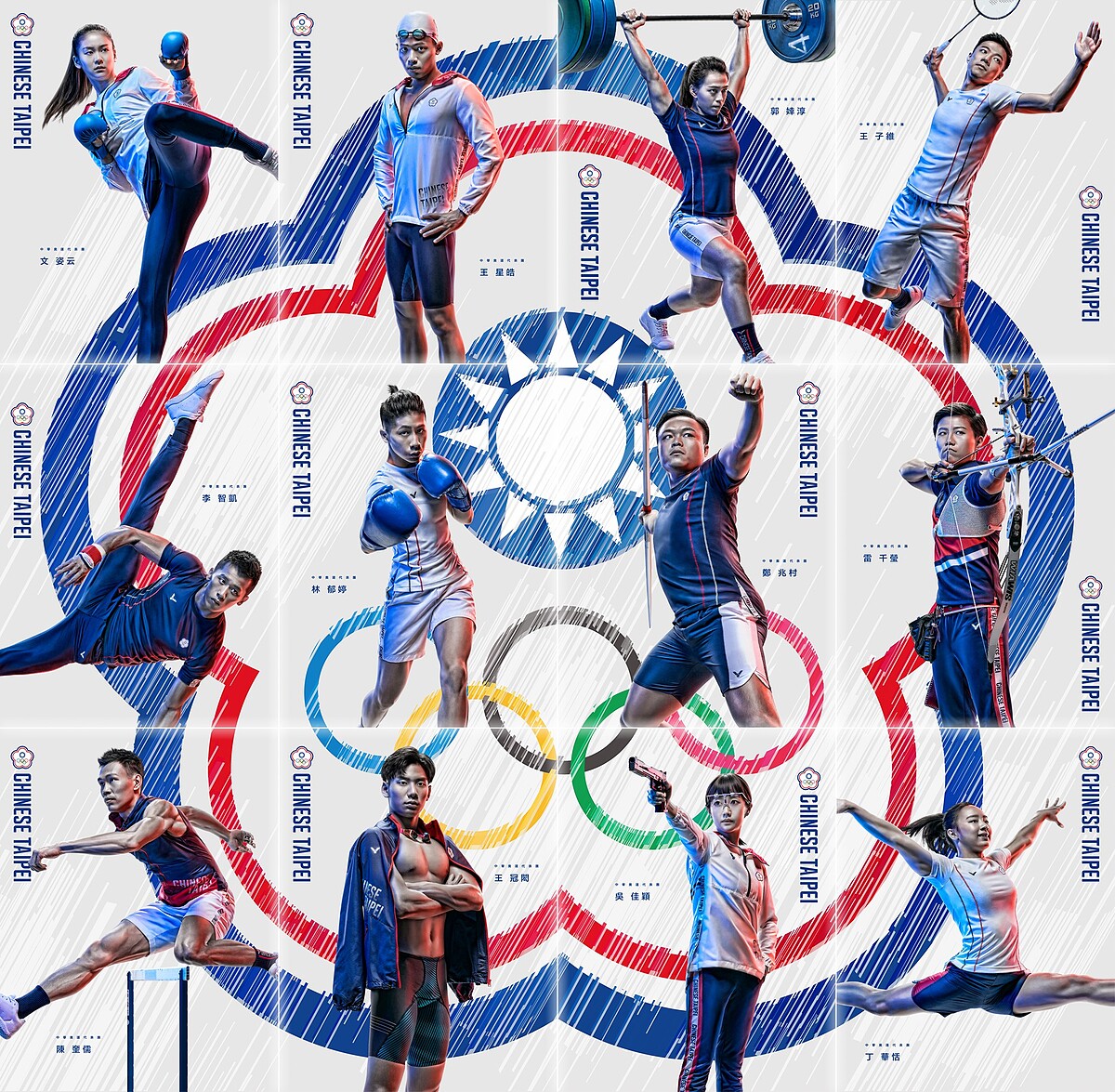 湯智鈞(射箭男子團體銀牌)、鄧宇成(射箭男子團體銀牌)、魏均珩(射箭男子團體銀牌)、雷千瑩(射箭女子個人64強賽)、譚雅婷(射箭女子個人64強賽)、林佳恩