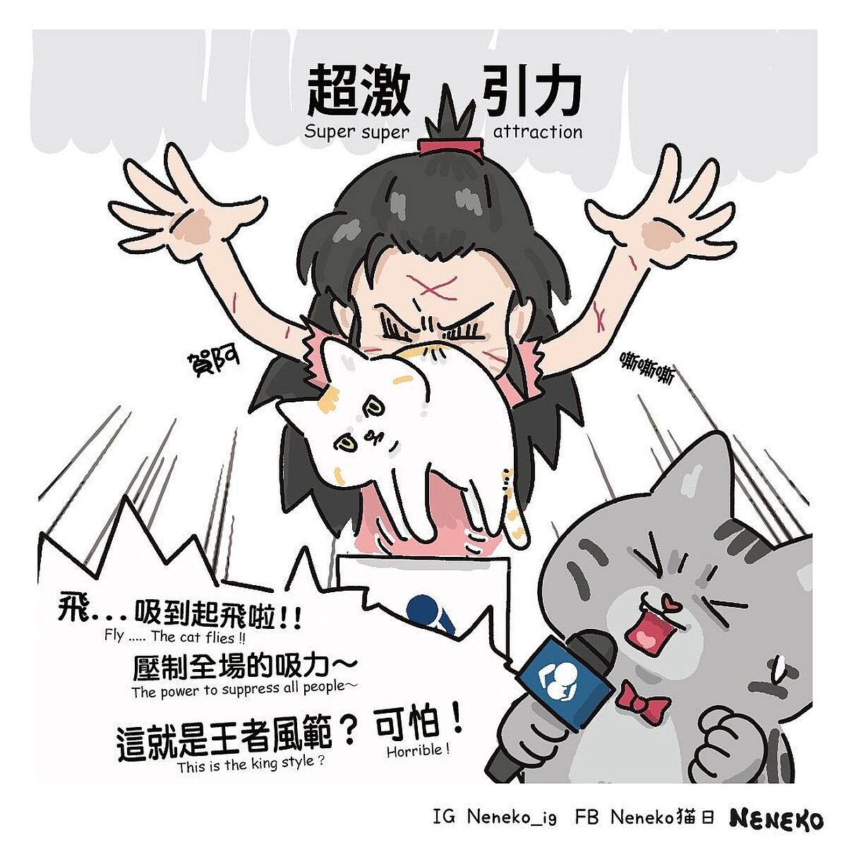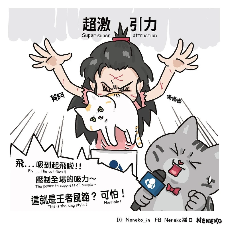 吸貓世界金牌爭奪戰中還有一個亮點,看到參賽選手們身上有貓咪的抓痕,這完全就是貓奴們的日常,大家覺得自己可以獲得第幾名呢?喜歡貓咪的人不妨到neneko貓日的FB、IG一起被可愛又有趣的貓咪圖文療癒吧!