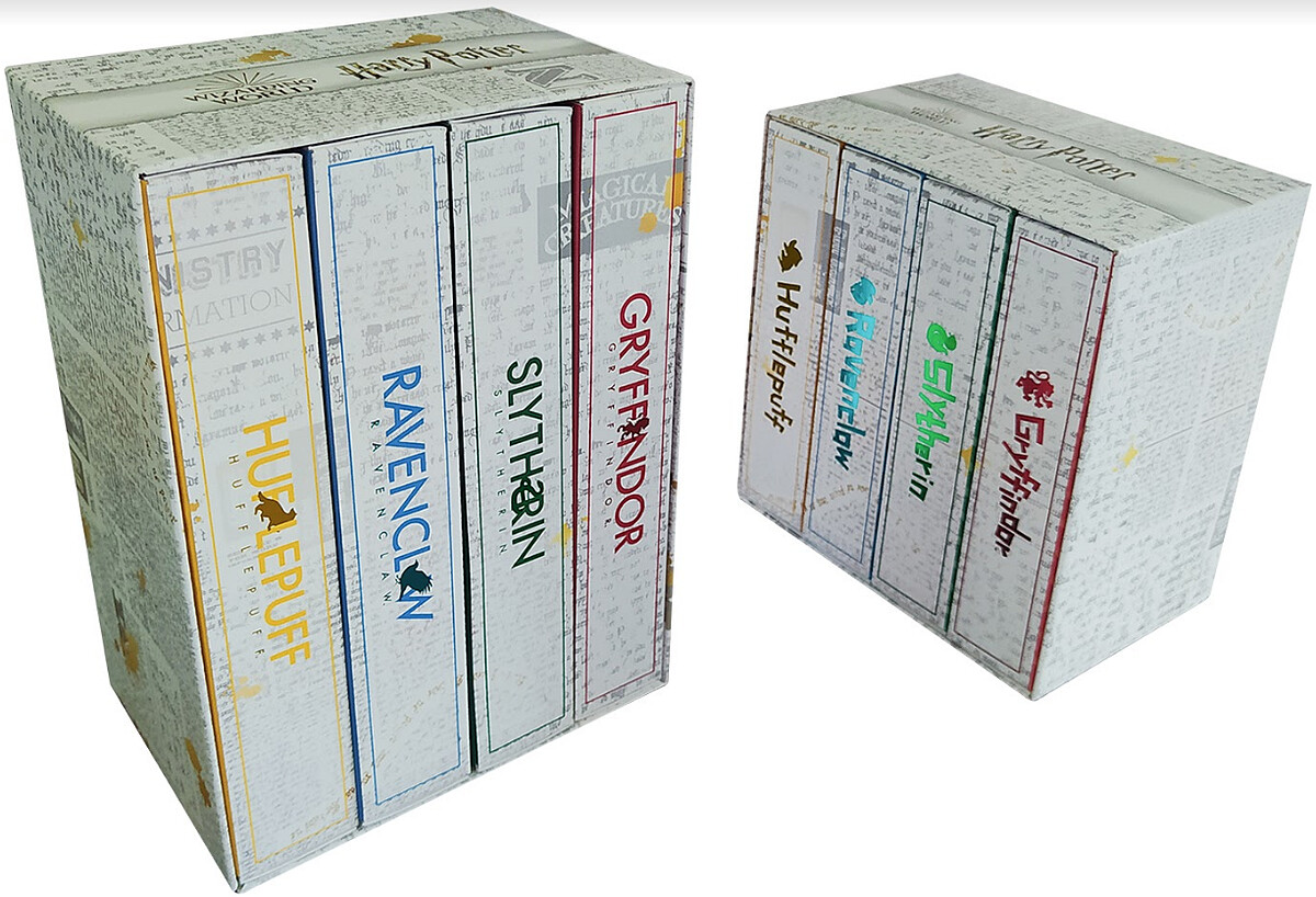 特別的是成人款略帶英國學院風,兒童款則添加Q版巫師袍、分類帽等魔法元素,讓大人小孩都能夠沈浸哈利波特的魔法世界當中,就連包裝也超講究,採用魔法櫃造型,外皮封套印上神秘魔法文字,四款內盒以紅、綠、藍、黃等四種色彩,突顯學院風格,燙金及浮雕技術,使內盒更細緻且添加收藏樂趣。