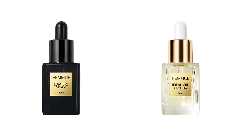 FEMMUE煥亮賦活維他命C精華(10ml)、FEMMUE山茶花保濕精華油(10ml)。