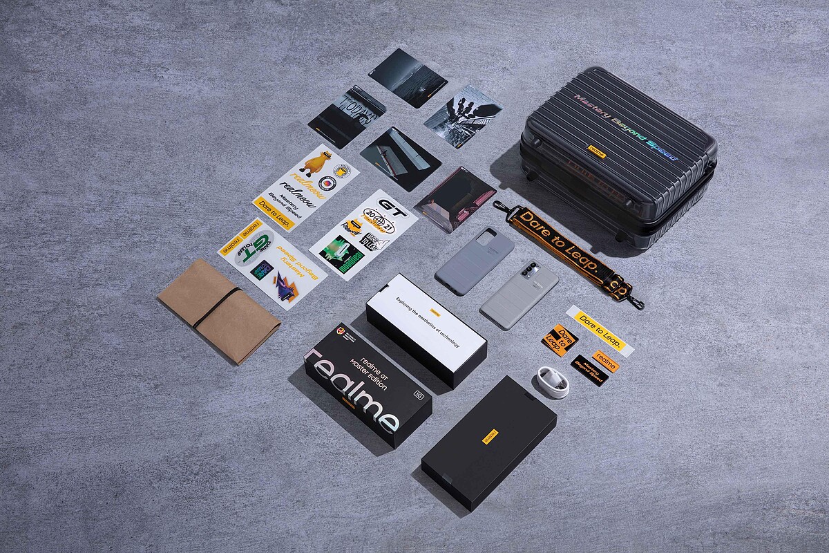 此外,這次realme GT大師版也同步推出「realme GT大師版探索世界超限量旅行箱組」,除了包含realme GT大師版手機外,還有護照套、探索世界明信片組、潮玩行李箱貼、翻玩Slogan磁鐵,台灣限量3組,售價$12,990元。