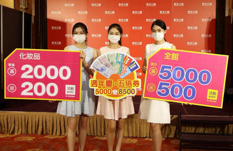 今年新光三越首波週年慶將從10/7起,於台北南西店、桃園站前店、台中中港店、嘉義垂楊店、台南中山店及高雄三多店,以化妝品單筆滿NT2,000送NT200,全館累計NT5,000送NT500的活動搶先開跑。除了首波六店的週年慶優惠外,今年更為了期待許久的五倍券決定再加碼更多重、更超值的回饋活動: