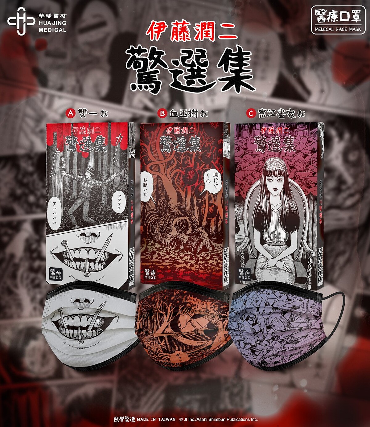 口罩款式越來越多樣,華淨醫材這回在萬聖節前夕,推出三款《伊藤潤二驚選集》醫療口罩,分別為「富江畫家款」、「血玉樹款」以及「雙一款」,將伊藤潤二的經典創作躍上口罩設計。