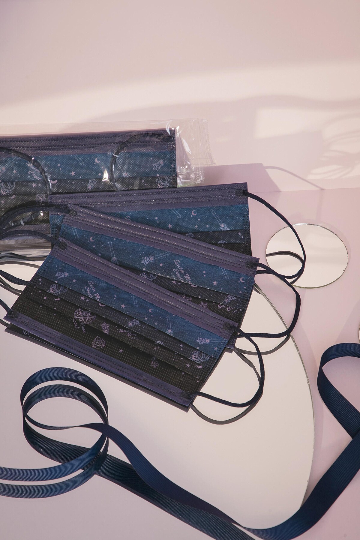 這款美少女戰士口罩印上了滿滿的變身器等符號,猶如浩瀚宇宙中的迷人星系,映襯著黑茶藍漸層布面,還有微柔光的色澤反射,看起來質感升級。