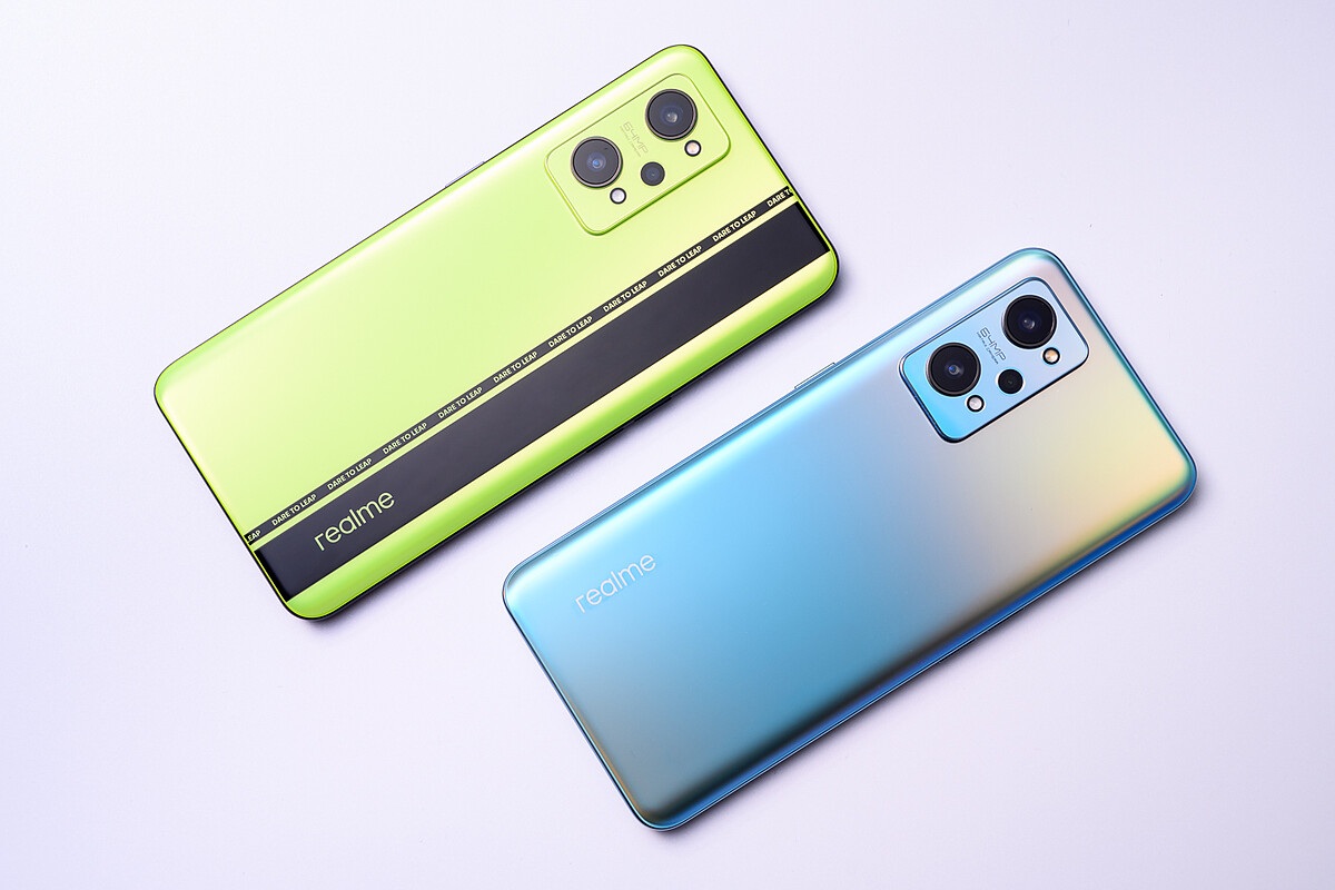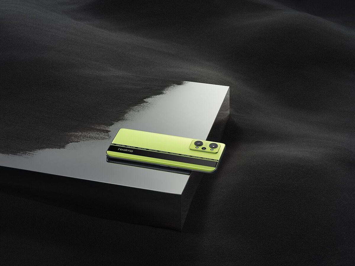 這款realme GT Neo2光是外觀就相當吸睛,將螢光綠和純黑以7:3比例混合高飽和度,加入GT系列標誌性的賽道紋線條,充滿現代與科技感,背蓋材質使用絲綢霧面的螢光綠AG玻璃工藝,加上光滑冰涼的黑色亮面玻璃,配色衝突大膽之餘,材質更耐刮防滑。除了黑薄荷色外,還有夢幻感蒼藍可選。
