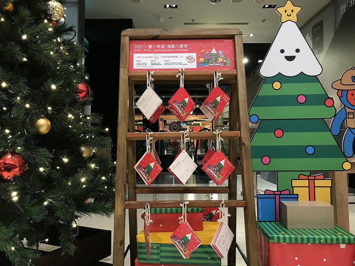 實現孩子的夢想!誠品書店與台灣世界展望會共同舉辦「一書一希望,滿載小夢想」公益活動,由台灣各地偏鄉孩童將盼望的書籍或禮物寫上「心願卡」並掛上耶誕樹,等待願望實現。活動邁入第7年,暖心故事不計其數,有孩子表示在印尼長大的媽媽常常想念家鄉,希望獲得印尼相關的書籍送給媽媽,;也有孩子希望收到國語辭典,才能認識更多的國字;更有想讀高雄餐旅大學的孩子寫下心願卡,由一位擔任該校老師的讀者認購書籍,並寫下小卡鼓勵追求夢想,期待未來在校園相見。