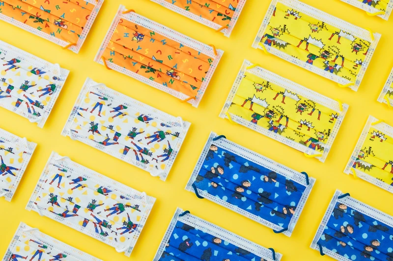 全新系列同樣從蠟筆小新卡通及動畫中的經典元素取得靈感,像是第一款的「玩具箱」就是大家都不陌生、經常在客廳場景出現的物品。裡頭口罩設計加入小新天馬行空的想法,又或是加入他常常扮演各式角色,還有動感超人、光屁屁怪獸等圖案,根本是童年回憶殺!