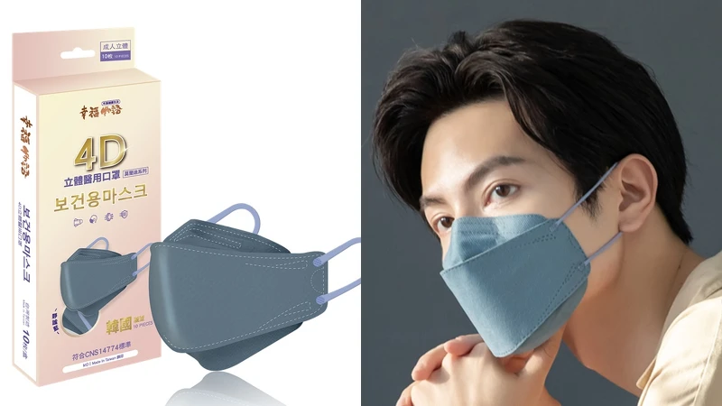 幸福物語一系列新登場的4D立體口罩配色超夢幻,光是「莫蘭迪色系列」,就有飽和的「太空灰」、「仙蹤綠」以及「靜謐藍」,戴上臉之後一秒充滿仙氣。
