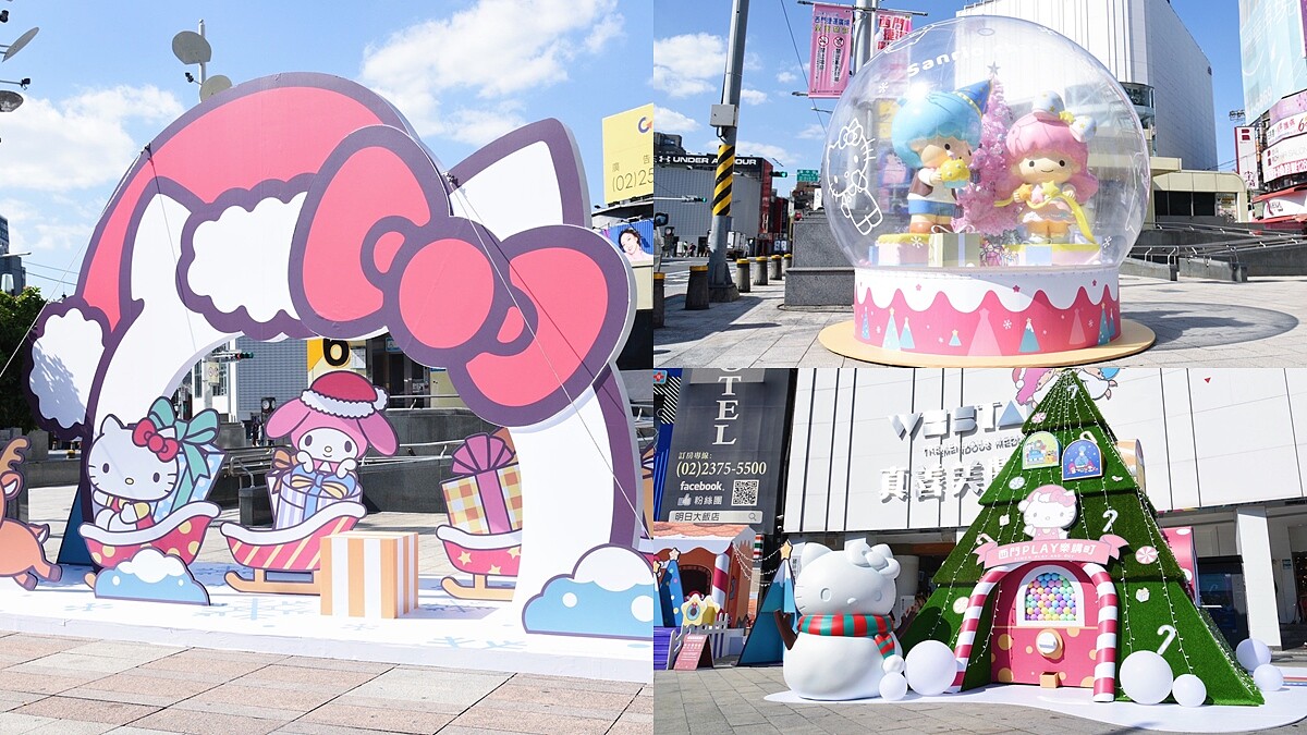 三麗鷗的粉絲們快衝西門町!即日起至2022/1/9,6號出口齊聚五大超人氣角色:Hello Kitty、布丁狗、美樂蒂、雙星仙子、大耳狗喜拿,分別化身應景裝置、祈福樹或大禮物造型三麗鷗限定主題店,拍好拍滿之餘,每個周末還規劃KPOP街舞大賽、街頭藝人、行動藝術、魔術表演、特技表演等多元精彩演出,打造可愛又夢幻的聖誕世界。