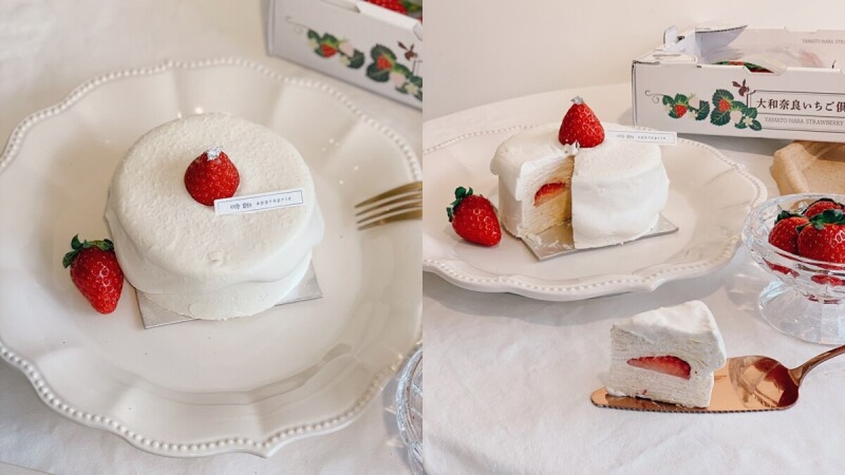 可以說是與貴婦甜點同名的《時飴Approprié》,在聖誕節給各位帶來了新驚喜,全新口味「和三盆古都華草莓千層蛋糕」選用來自奈良頂級品種之一的古都華草莓,不只外觀上果實豔紅,吃起來甜度也較其他草莓更高。