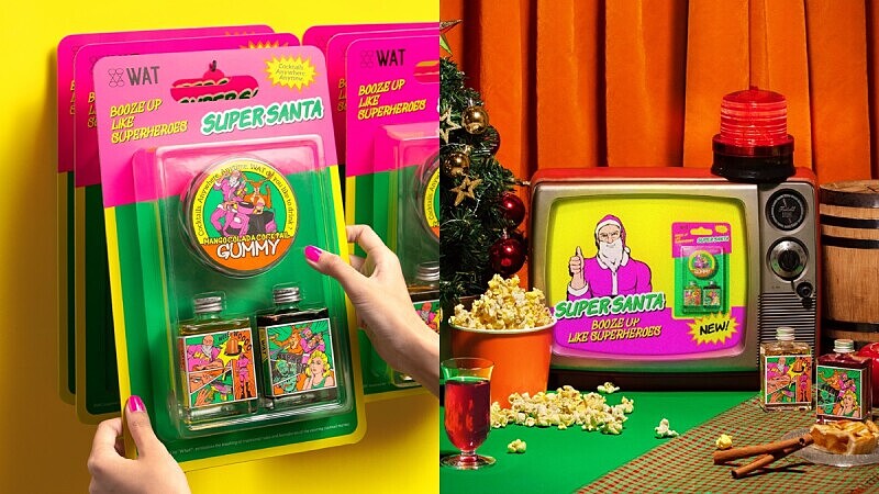 《WAT》特別打造美式漫畫的耶誕禮盒,包裝上可以看到肌肉耶誕老人與自戀馴鹿騎著台灣老牌名流150機車一同出擊,相當俏皮。