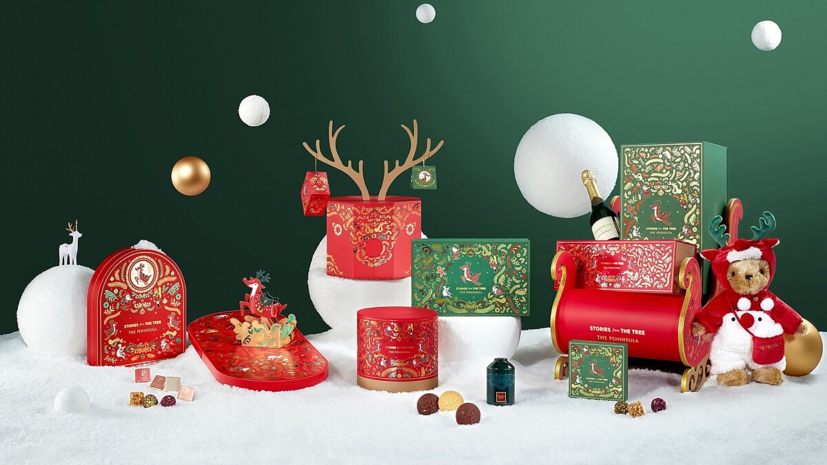 每年中秋節月餅都引起搶購熱潮的半島精品店,推出以馴鹿為設計靈感的聖誕禮品系列,紅綠色包裝上有著「跳躍馴鹿飛越夜空」的圖案,傳遞著佳節時刻充滿歡樂與喜悅的氛圍。有雪橇形禮物籃盛載的巧克力、餅乾,還有香脆糖漬薑餅乾、精緻馴鹿裝飾品,送禮出手勢必博得對方歡心。