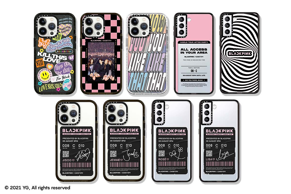 忠實鐵粉們還可以選擇印有團員們:JISOO、JENNIE、ROSÉ、LISA親筆簽名的演唱會票根設計手機殼,大力宣告對於偶像的愛。還有以BLACKPINK 首場世界巡迴演唱會「In Your Area」全區通行證做為設計的客製化手機殼,可自行添加專屬姓名,宛如親臨現場。手機殼支援iPhone及部分三星Samsung手機型號,最強有具備9.8公尺防摔能力規格。