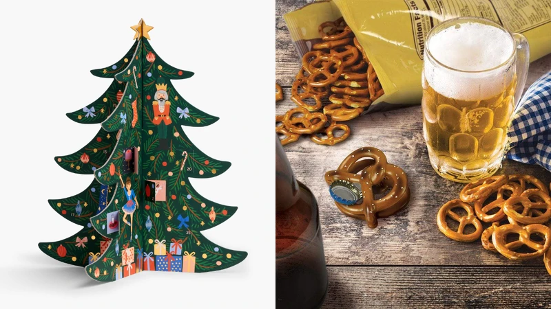 推薦最有氣氛的節日選品,像是美國品牌RIFLE PAPER耶誕樹造型倒數桌曆;以哈利波特為主題製作的「魔法護照」,內含霍格華茲入學通知書、九又四分之三月台車票等電影小道具、書籤、明信片;創意品牌Fred & Friends將最適合搭配啤酒的蝴蝶餅乾,設計成造型開瓶器,還能隨時打開啤酒與朋友暢飲!