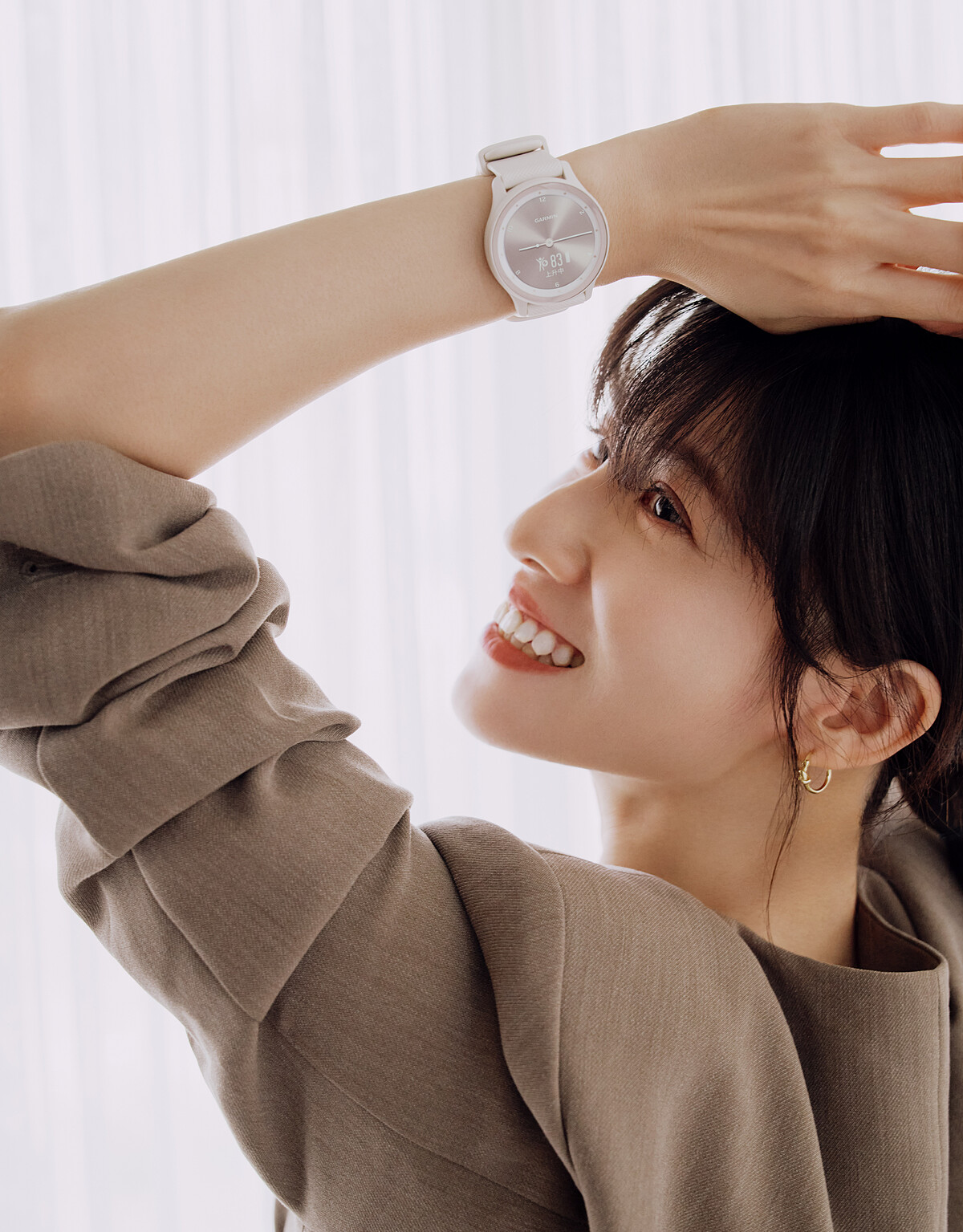 Garmin vívomove Sport是連俞涵的第一支智慧手錶,連俞涵一眼就愛上它的理由非常直接:「它有一般手錶經典的指針設計與我偏愛的簡潔外型、大地色系,還有很實用的智慧功能!」Garmin vívomove Sport這款指針智慧腕錶,內建全天候健康數據監測,能幫佩戴者隨時記錄心率、血氧、壓力、飲水等重要數據,讓連俞涵深感受用地表示:「我喜歡做各種手工藝品,有時候甚至到廢寢忘食、失去時間感的程度,但有了Garmin vívomove Sport給我的壓力指數、身體能量指數、久坐、喝水提醒等貼心提醒,讓我在擁抱興趣的同時還能呵護身心。」