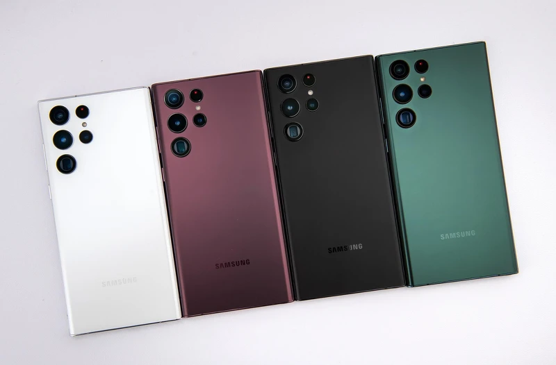 Galaxy S22 Ultra機身配色取材自大自然,共推出黑(Phantom Black)、白(Phantom White)、綠色(Green),以及S22 Ultra的獨特新色-勃根地紅(Burgundy)。
