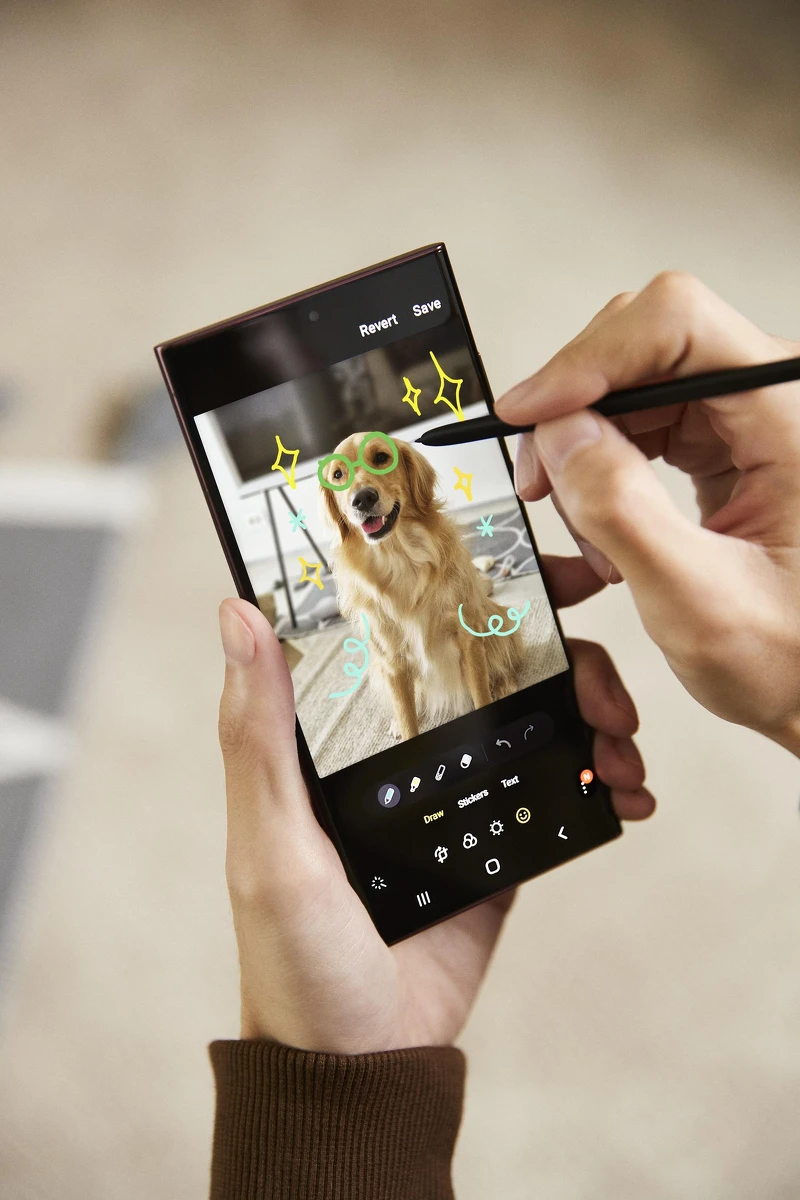 深受Galaxy Note系列粉喜愛的S Pen手寫筆,這回首次加入Galaxy S22 Ultra中,反應快又靈敏,相較於Galaxy S21 Ultra,延遲大幅降低70%,螢幕書寫手感更佳。