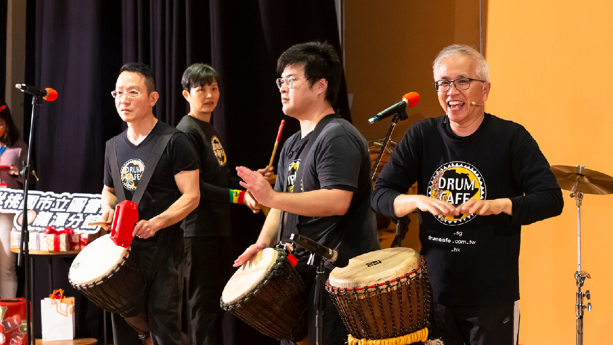 龍潭圖書館舉辦的「鼓動龍潭-百人互動式擊鼓秀」,由國際知名的DRUM CAFÉ®師資團隊帶領,不同於一般觀眾坐在台下聆聽的音樂會類型,這場活動的演出主角,是座位上的每一位觀眾。每位入場民眾的座位都配有一面非洲鼓及一支顏色、長度各異的音樂棒。在講師和鼓手的帶領下,每個人都變身為打擊樂團的演奏家,全體合奏出和諧又激昂的樂章!