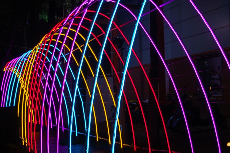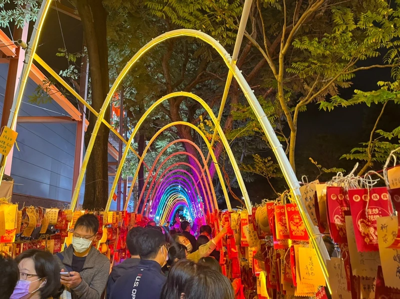 由黑川互動媒體藝術打造的「無限光景」的作品,可以掛上祈願卡的彩虹祈福隧道,取自波動拳靈感,有火焰、閃電等酷炫招式,互動起來肯定歡樂無比又搶鏡,晚上拍起來絕對美炸,肯定也是熱拍景點之一。