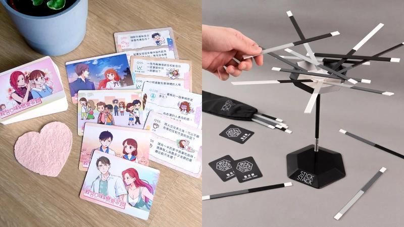 歡迎來到大人的奇幻樂園!節日不想一個人過?就讓「脫單神器」《綜合口味的戀愛習題》神助攻,以數字回覆卡牌列出的戀愛中、交往前煩惱,找出和自己最合拍的人,營造超曖昧氛圍;若想快速炒熱聚會氣氛,不如試試緊張刺激的《籤籤入扣》,輪流放置色籤,並在層層疊起的色籤中保持平衡不塌倒,保證尖叫連連!