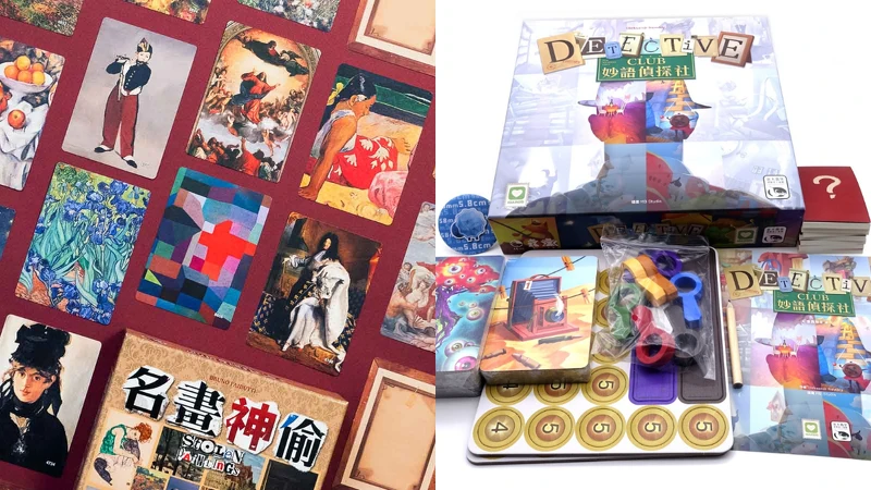 蒐羅200幅作品的《名畫神偷》,作品包含達文西「蒙娜麗莎的微笑」、梵谷「星空」等知名畫作,每回合神偷都會從美術館偷畫賣出,偵探必須找出失竊的名畫,考驗彼此記憶力;《妙語偵探社》遊戲卡牌以豐富美術元素設計,值得細細欣賞,觀察每個人出的卡片,猜出沒獲得提示的玩家。