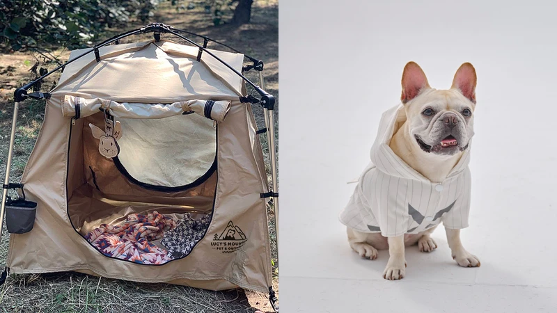 超可愛寵物專屬帳棚由台灣新瑞品牌LUCY’S MOUNTAIN研發,防風防潑水且好收納,無論到哪裡都可以讓毛小孩擁有獨立舒適的休息空間;紐約設計品牌PEHOM也有時髦的毛小孩3M反光運動帽衣,即使夜晚也能讓寵物快樂趴趴走。