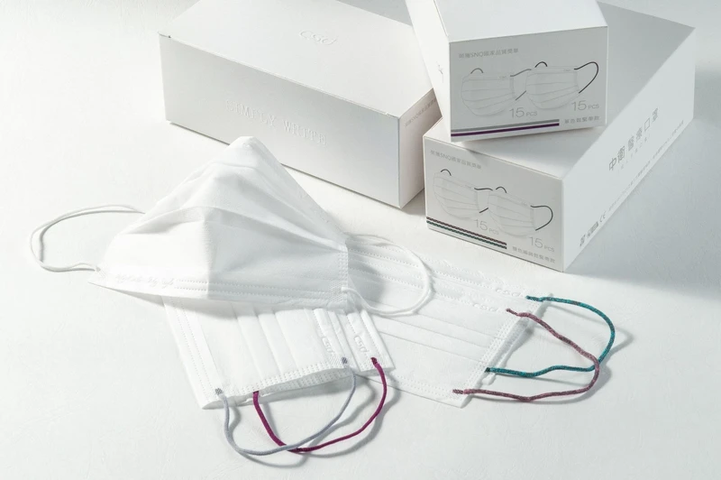 全新系列分為「SIMPLY WHITE」與「SIMPLY WHITE-ISH」,「SIMPLY WHITE」白色口罩搭配白色耳繩,有3D及平面兩款,而「SIMPLY WHITE-ISH」則配上彩色耳繩,共有「麥飯石灰」、「炫霓紫」、「月河藍+夜幕灰」以及「夜櫻粉+夜幕灰」等4種彩色耳繩。