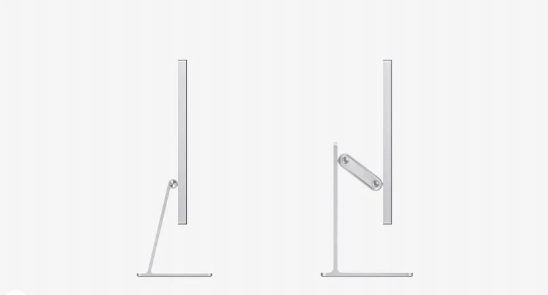 除了內建支架讓使用者能夠將顯示器傾斜達30度,Studio Display 也提供可調整斜度與高度的支架,亦有 VESA 吊架連接器可供選擇,支援直向或橫向螢幕配置。