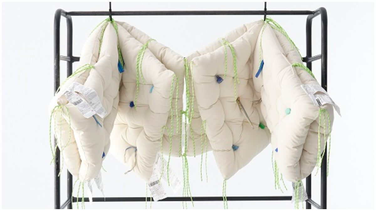 移居宜蘭多年的服裝設計師陳劭彥的作品延續個人品牌新系列的概念,以「人」、「山」、「海」為思考,藉由創作傳遞人與環境的連結,並以自身背景-服裝設計為創作主題,結合 IKEA 強調的DIY精神,運用有綁繩的椅墊和從宜蘭海邊撿來的廢棄物,讓「打造新設計」與「回收再利用」兩種理念融合,而作品能簡單被組合與拆解的特性,也呼應永續與環保議題的靈感原點。